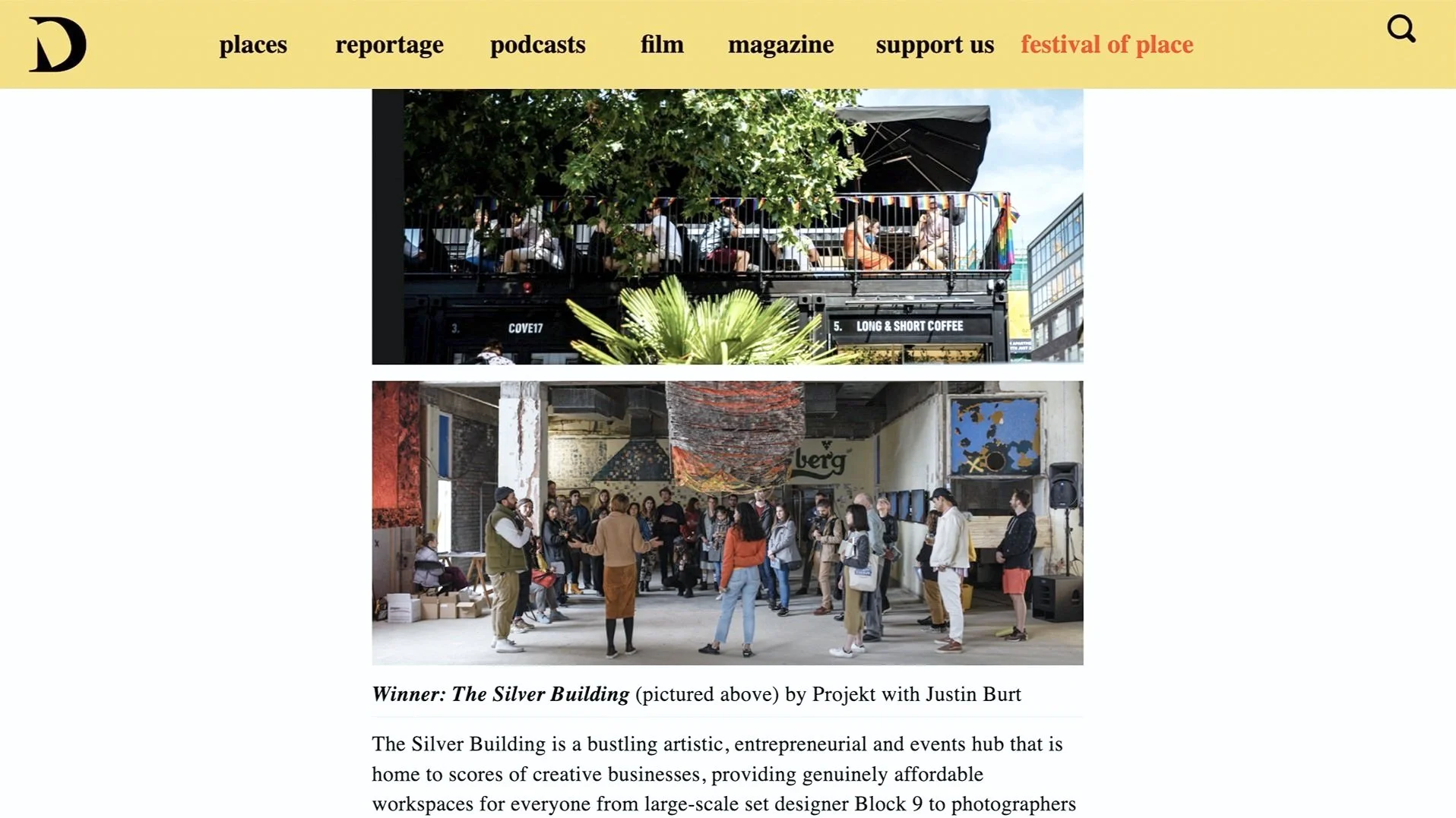 2019 [Silver Building] Winner of The Developer Meanwhile Award, annually awarded to six pop-up interventions that have made a positive contribution to place in the UK.